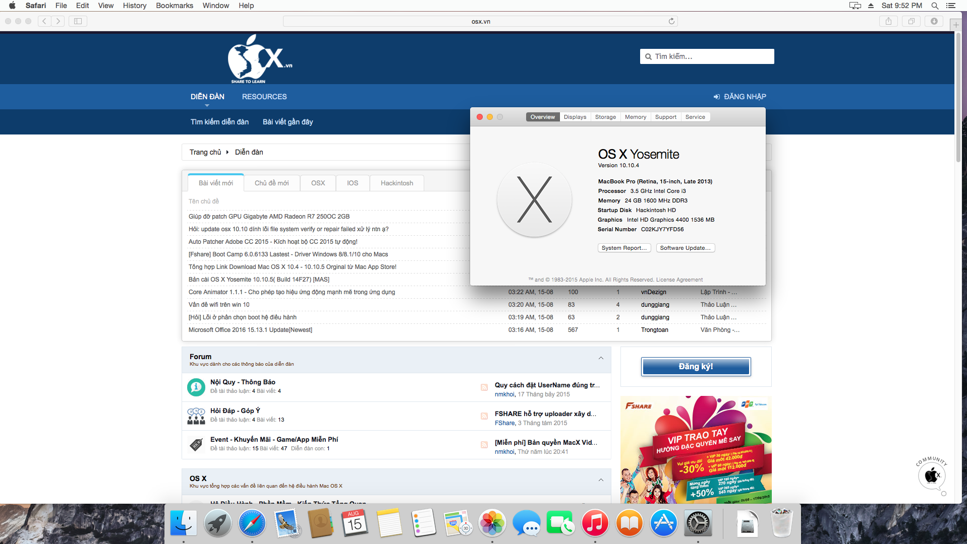 Chào các anh/chị/em. Em đã cài Hackintosh sạch từ post này: