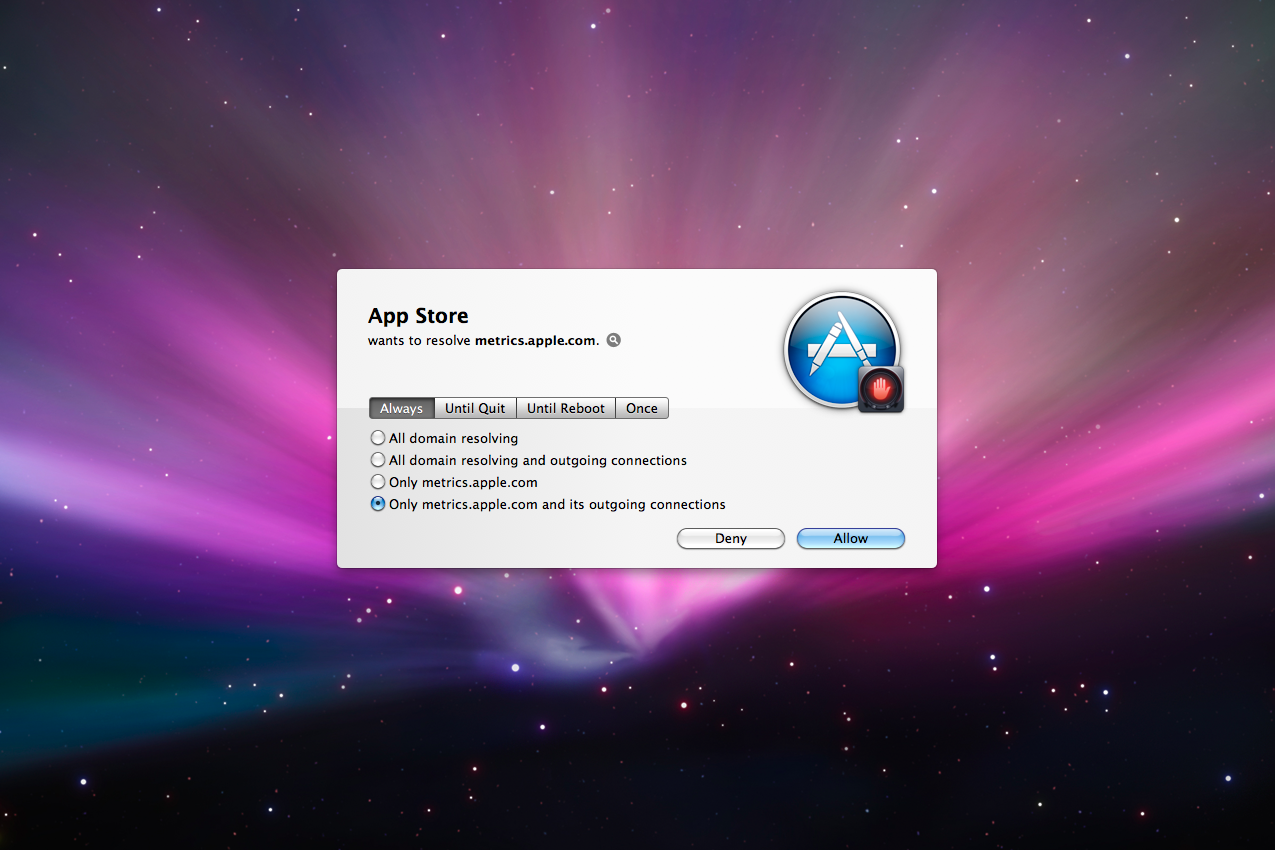 Hands Off! is an application to monitor and control the access of applications to your network and disks. Being able to monitor the normally unnoticeable activities enables you to make informed decisions regarding the transfer of your private information, hence avoiding confidential information leakage.