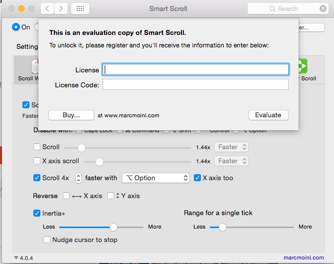 Hướng dẫn active: Sau khi cài đặt, vào System Preferences --> Smart Scroll---> Register và nhập bất kì name + code bạn thích: