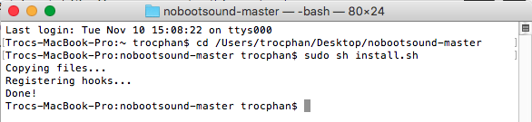 cd "kéo thả folder nobootsound-master ngoài Desktop vào"