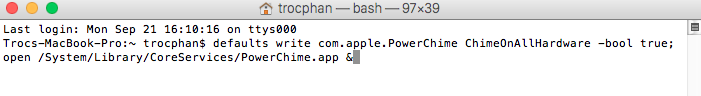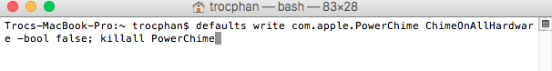 Khi bạn muốn tắt âm thanh sạc chỉ cần bật lại Terminal theo cách trên và nhập lại các dòng lệnh dưới đây:
