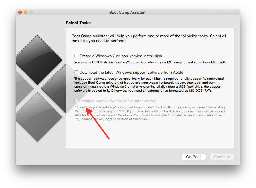 các bạn ơi. mình đang cài win 7 qua boot camp mà ko dc. Tạo usb boot xong ùi. Còn cái đoạn tiếp thì dòng thứ 3 mình ko tích vào được, các bạn xem giúp mình cách fix với